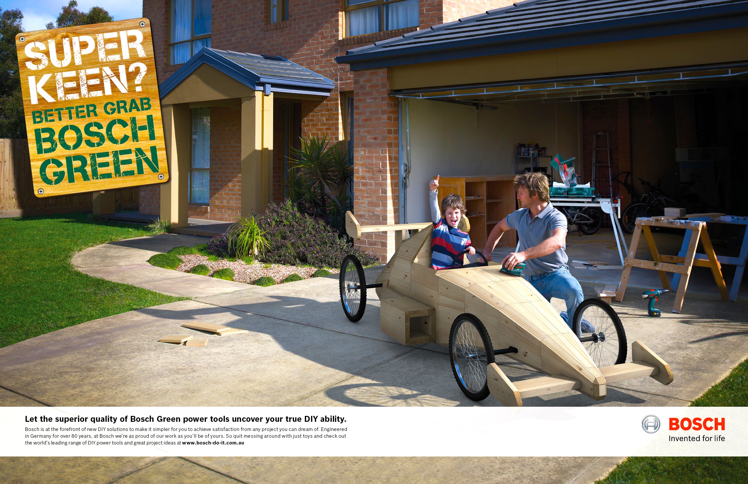 The ‘Super Keen’ campaign for the Bosch ‘Green’ range of DIY power tools was designed to add some ‘Aussie bloke’ factor to the German brand and give them some much needed personality. It tapped into the thought of the satisfaction and enhanced results home handymen will get from Bosch if you’re keen on your DIY.