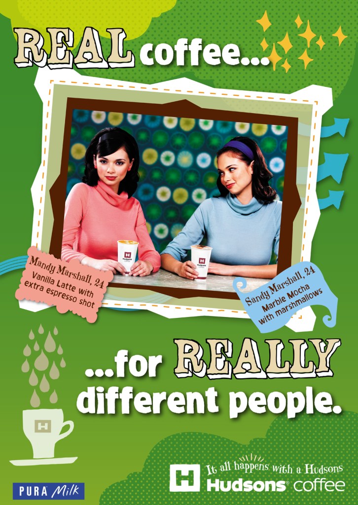 This campaign was based on the insight that the way people have their coffee is a very personal thing, so under the banner of ‘Real coffee for really different people’ the messaging was designed to portray that although Hudsons Coffee is a chain, they still make great coffee. It also served to showcase the wide range of customisation options available.