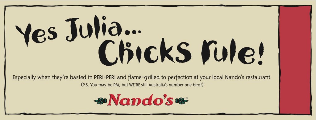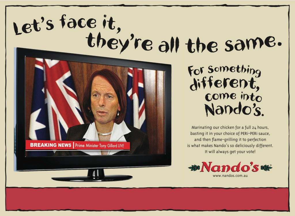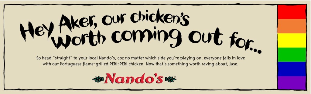 Topical advertising for Nando’s allowed me to really showcase my ability to turn around work at lightning pace to capitalise on the issues of the day, often getting an ad to radio or the press within 24 hours. It also served well as PR for the brand with commentators on radio, TV and in the press often referencing the spots and adding additional earned media.