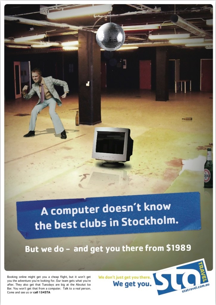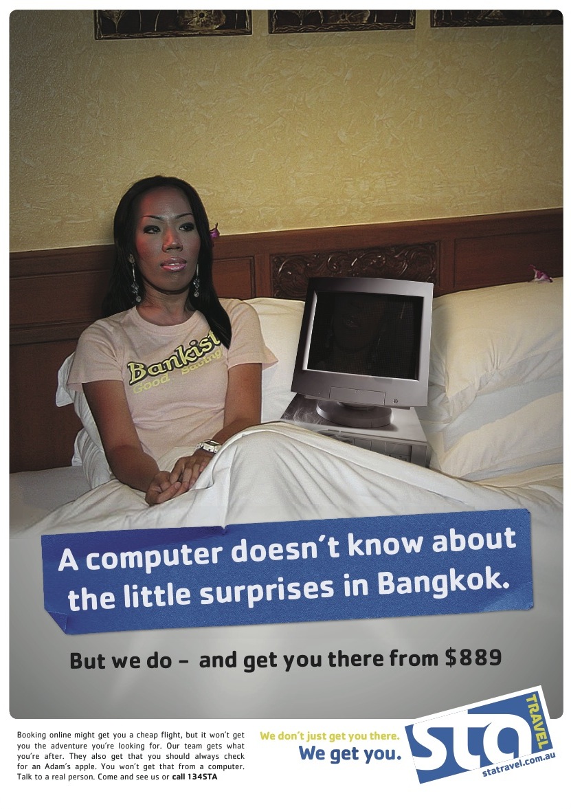 Two stage campaign for travel chain STA Travel that introduced the “We don’t just get you there. We get you.” positioning. Stage one was created to overcome the common misconception that the brand only caters to the student market, while stage two countered the growing threat from online competitors.
